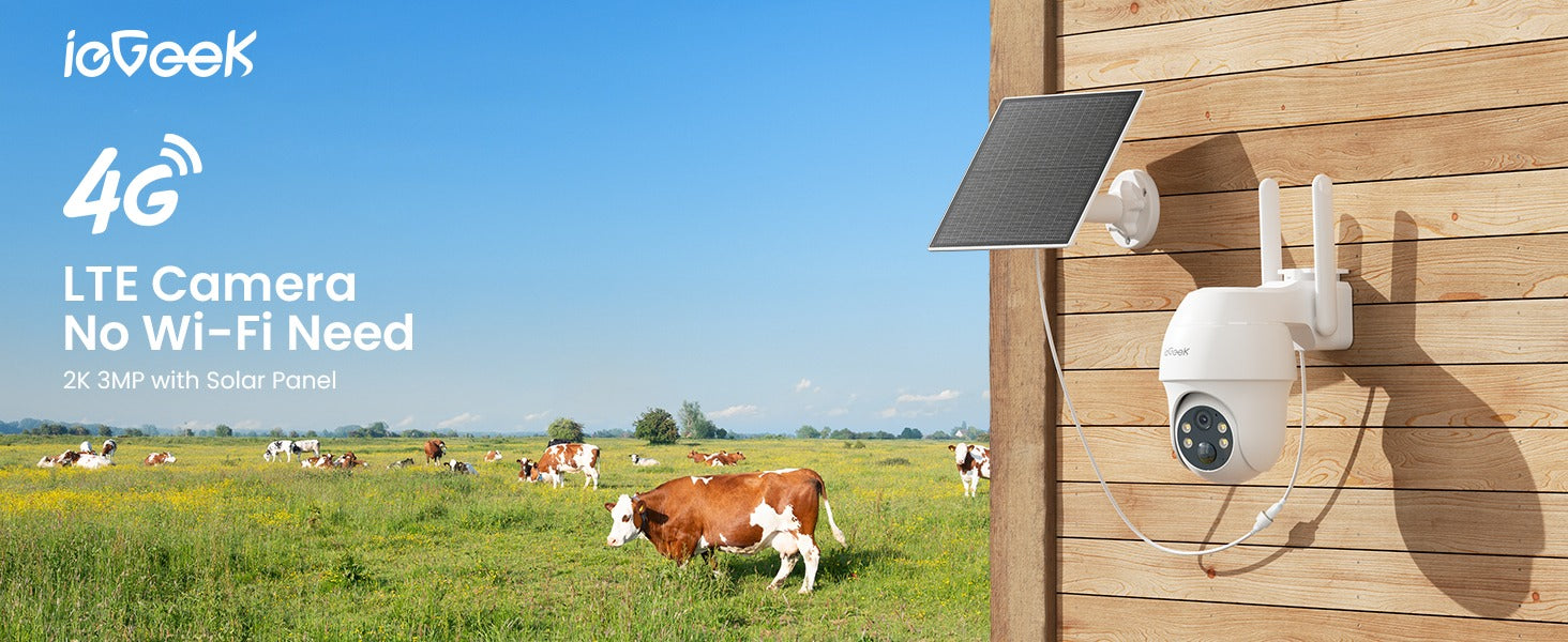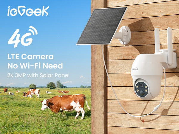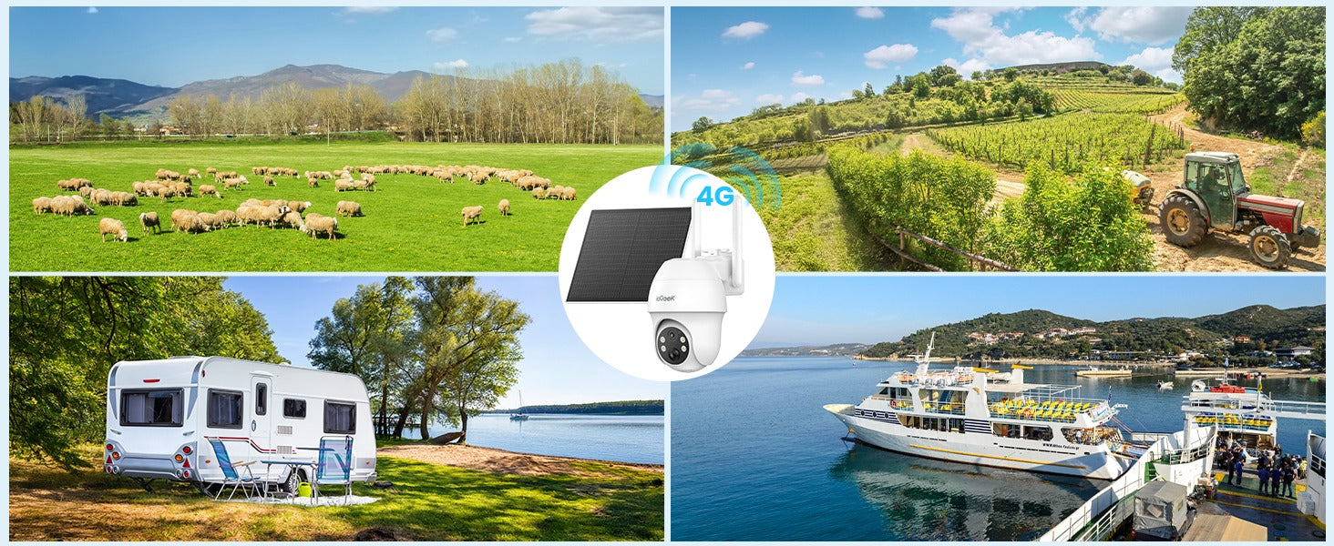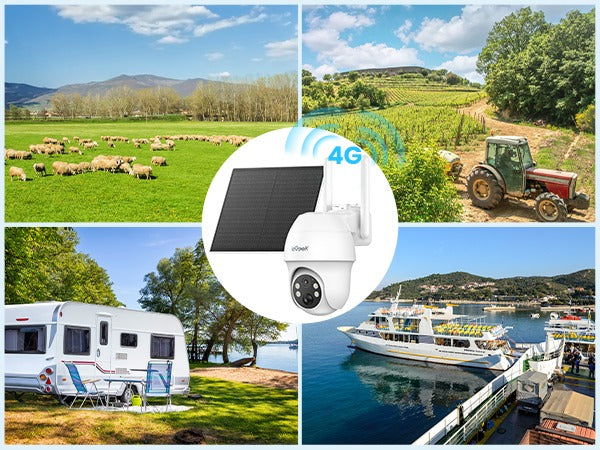 - 4G LTE Cellular Security Cameras Wireless Outdoor: ieGeek 4G LTE cellular camera is designed for places without wifi & electrical power, this security camera can work with nationwide 4G network, 100% wire-free, no wifi needed, perfect for outdoor places, such as barn, farm, ranches, construction sites, vacations homes, warehouse, RVs, wildlife studies. With IP66 waterproof, the security camera perform well in bad weather like rain and cold.