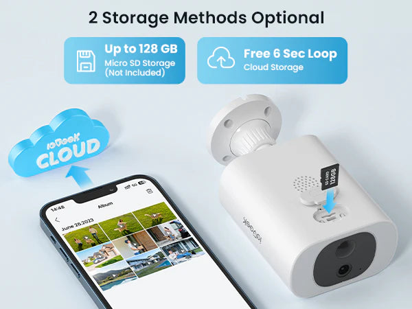 - No Subscription Fee & Micro Memory Card/Cloud Storage: ieGeek home security camera supports memory card (Up to 128GB, Not Included) and free 6S loop cloud storage, you DON'T need to pay cloud subscription fee. Compared with other brand which only support cloud storage, ieGeek give you more choice, help you save money. The historic recordings are saved onto Micro memory card or cloud, you can playback or download recording on the phone anytime.