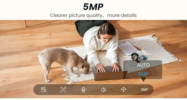 - 5MP UHD & Auto IR Night Vision: This pet camera indoor with phone app features 5MP Super HD to clearly capture every detail of your pet child. The built-in infrared LEDs allow for night vision up to 50 feet, so you can clearly see what your doggy is holding in his mouth, even at night. (Not a battery camera, needs to be plugged in for use)