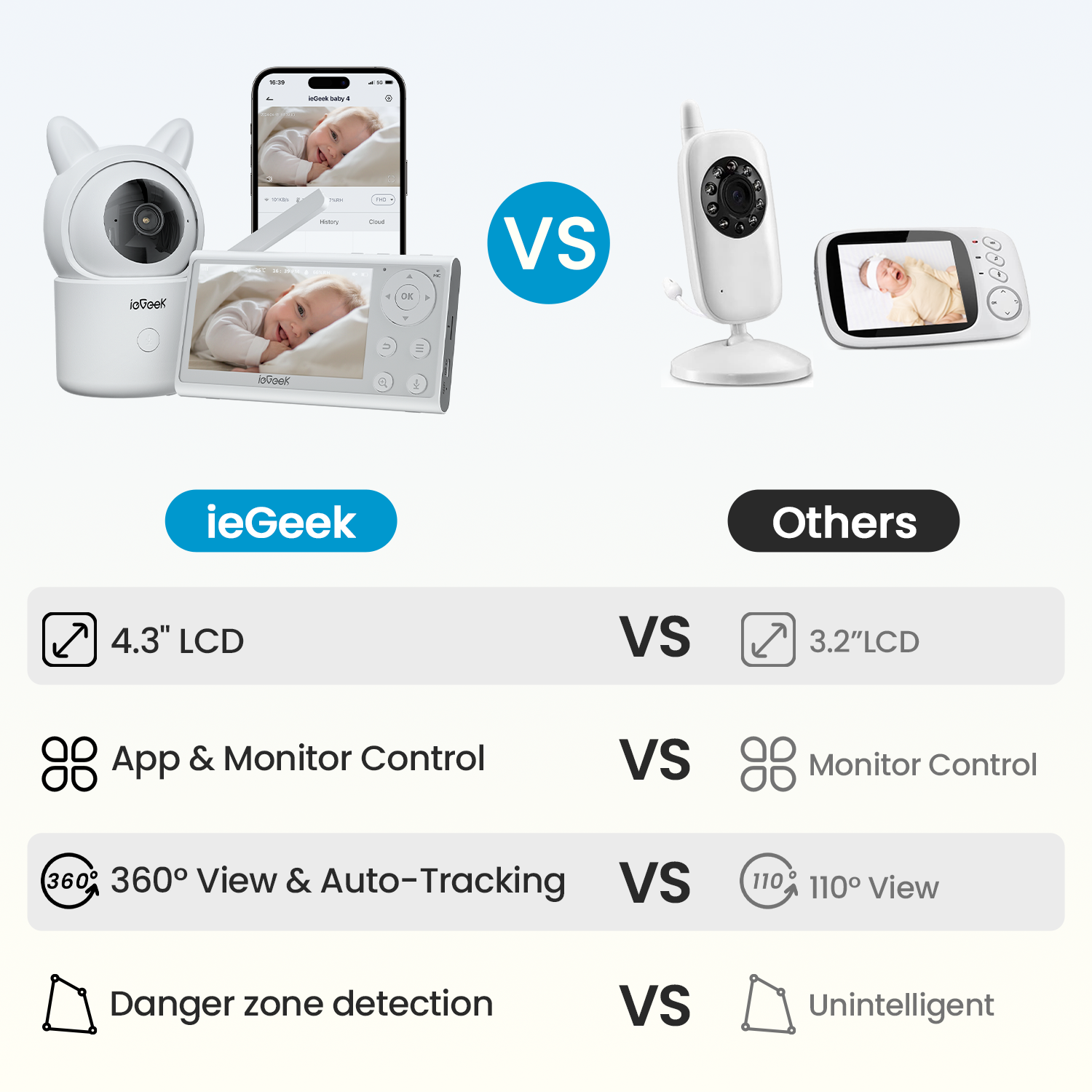 1080P HD Camera, Panoramic PTZ Control, Comprehensive Mobile Connectivity, Smart Care Features, Interactive Baby Care, Flexible Storage Options.Plus, enjoy a 2-year wa-rranty and exceptional after-sales service, making it a smart choice for modern parents. Ideal as a baby shower gift, ieGeek offers top value without compromising on performance or quality.