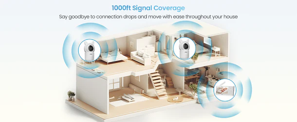 Enjoy the freedom of extended connectivity with our baby monitor, covering up to 1000ft. Whether you're in the living room or garden, stay in touch with your little one, always just a glance away.