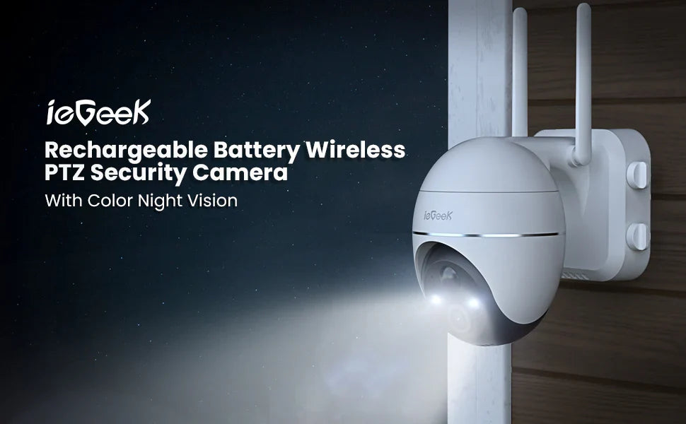 ieGeek wireless camera has advanced lens and bright spotlights, providing you with 2K clear colorful picture and video at night. When movement is detected at night, the spotlights will turn on immediately to help you see details more clearly and warn intruder. If there is no movement detected, the light will automatically turn off.