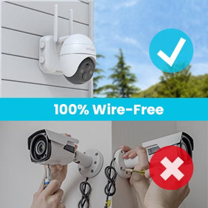 ieGeek outdoor security camera is powered by battery and connected to network via WiFi. You DON'T need to run any power cords and network cable. Without annoying wires, you can install the camera more freely. Complete installation within 10 minutes! No wires, no hassle!