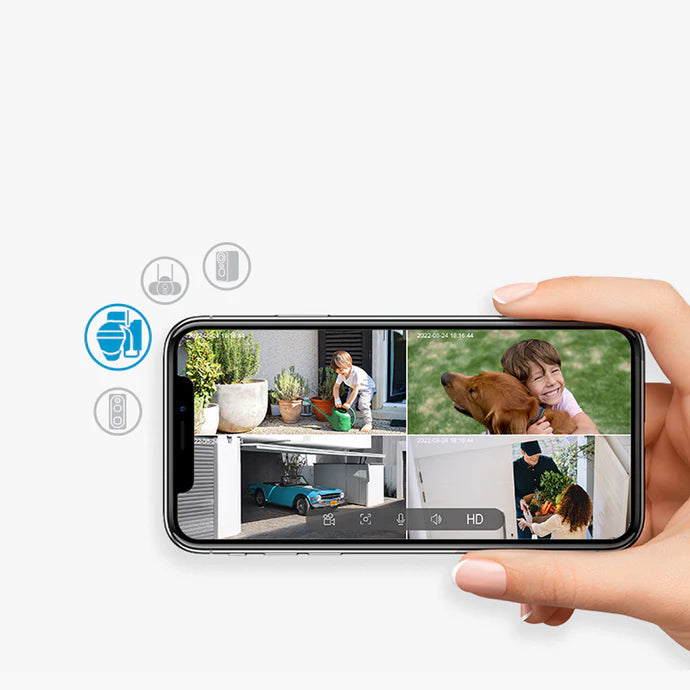 The app supports multiple cameras connection, so you can connect multiple cameras to phone or tablet and view live footage on 4 screen at the same time, which help you manage the entire security system from one simple app. If your family's smartphone installs the same app, you can share the camera with them by scanning QR code.