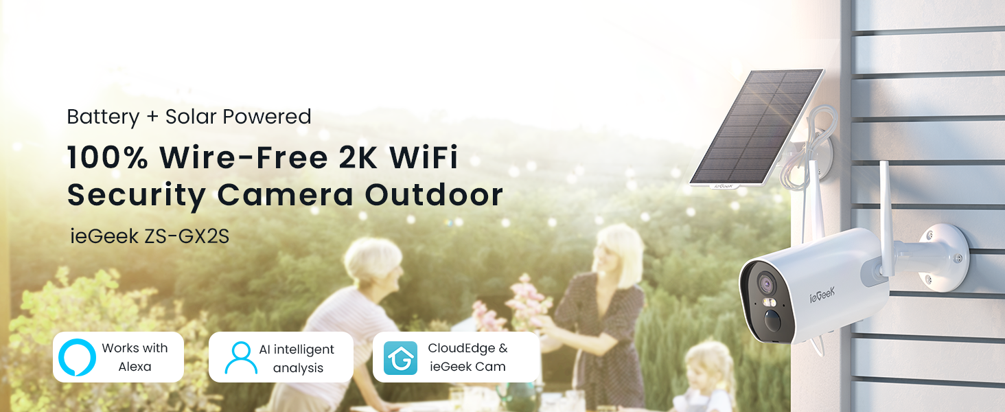 - 2K FHD & Color Night Vision & 130° Wide Angle: The Upgrade ieGeek wireless outdoor camera provides 2K HD picture quality, views ultra-clear pictures and videos, clearer than 1080P. Equipped with 4 IR lights, the monitor distance is up to 65ft see crystal clear images and video via a 130°wide view regardless of the weather. ieGeek solar security camera provides crystal clear color night vision and monitors your home in 2K HD video with color night vision.