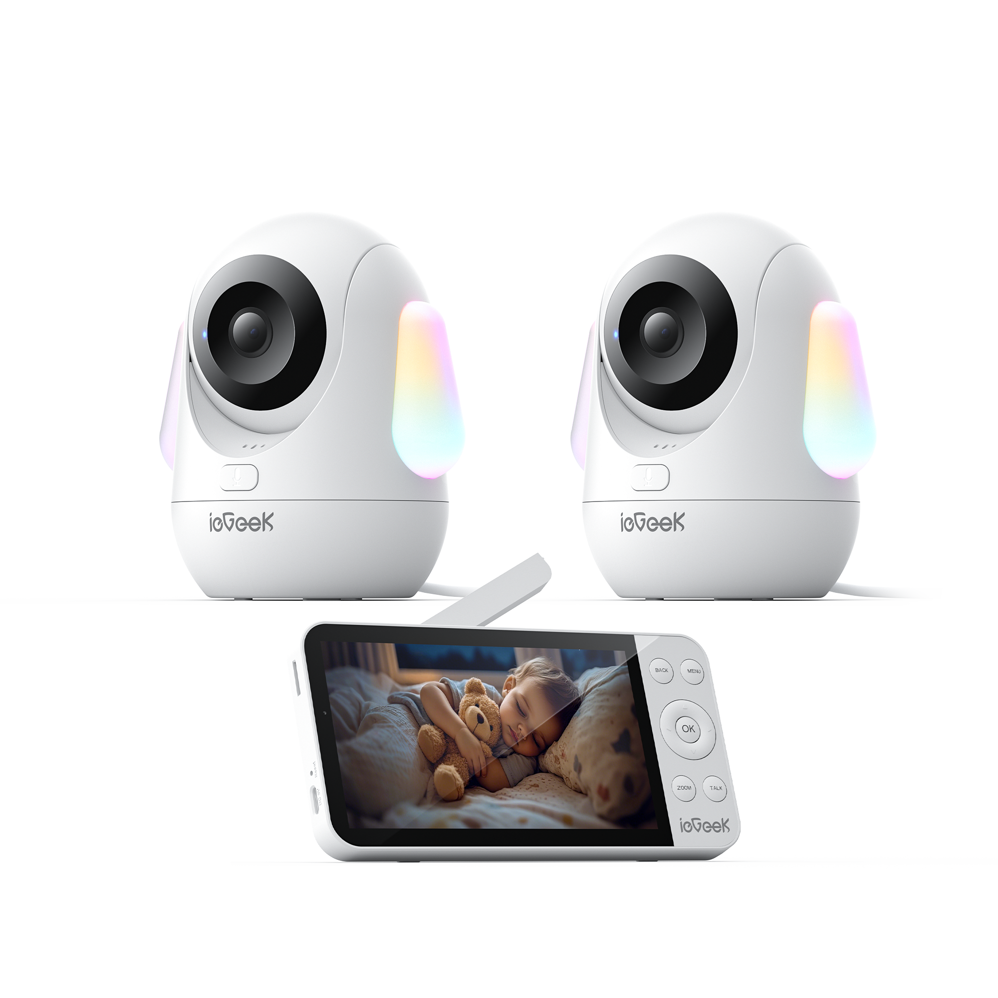 - Split-Screen for Two 2.5K Cameras: Monitor two babies or rooms at once on a single, full-HD split-screen display.