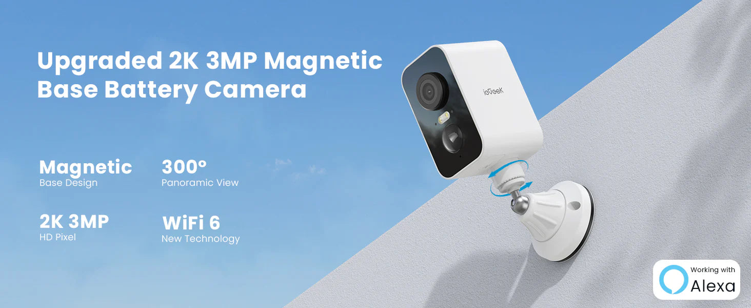 Upgraded 2K 3MP Magnetic Base Battery Camera