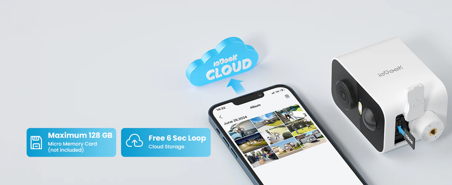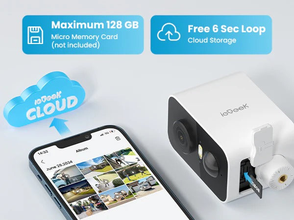 - No Subscription Fee & Micro Memory Card/Cloud Storage: ieGeek home security camera supports memory card (Up to 128GB, Not Included) and free 6S loop cloud storage, you DON'T need to pay cloud subscription fee. Compared with other brand which only support cloud storage, ieGeek give you more choice, help you save money. The historic recordings are saved onto Micro memory card or cloud, you can playback or download recording on the phone anytime.