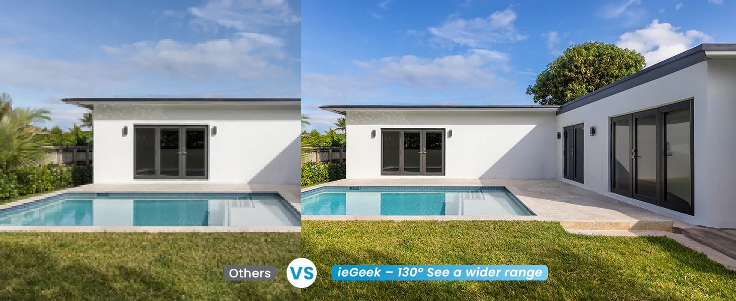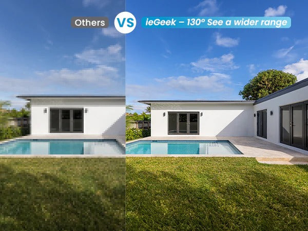 - 5MP QHD Video & 33ft Color Night Vision: The ieGeek ZY-C1 camera offers a high-resolution 5MP image quality. 2 PIR LEDs and 2 white lights, 130° wide-angle lens and 33ft night vision range, allowing you to monitor more distant, wider and clearer environments, day or night.