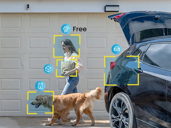 - AI & PIR Motion Detection & Real-time Alarm Notification: Latest wifi camera AI/PIR quick response mechanism identifies people and sends alarm notifications (0.2s-3s). When motion is detected, it sends instant alarm notifications, records alarm video and audio, and activates an alarm sound and spotlight to deter unwanted visitors.