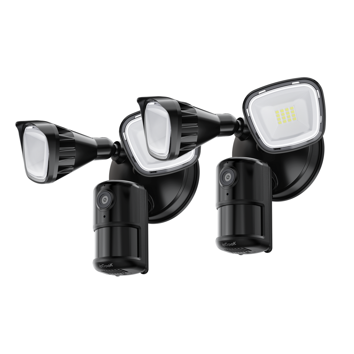 - Covering a wide 150° field up to 49ft (15m), the motion sensor instantly activates the 6000K floodlights and alarm system, sending an immediate notification to your ieGeek Cam App.